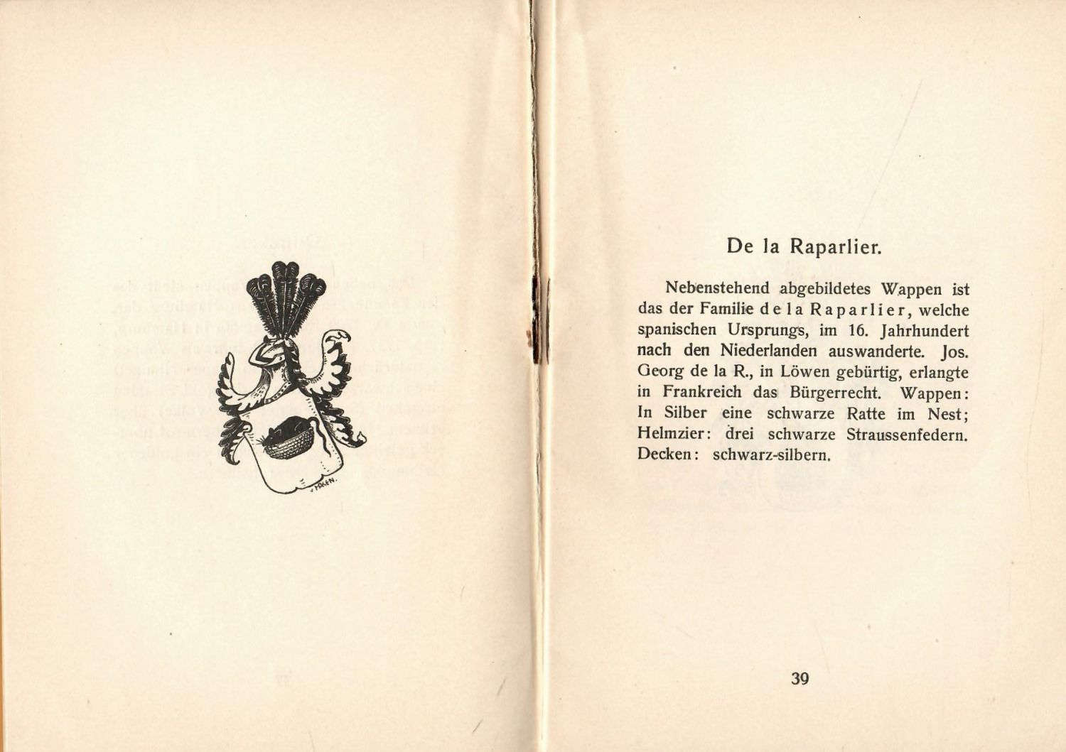 Souborné vydání řady neobvyklých erbů, jež byly od r. 1900 zveřejňovány v měsíčníku "Archiv für Stamm- und Wappenkunde" a paralelním periodiku "Roland", vydávaných nakladateli této publikace. - Obálka vpředu odlepená, knižní blok rozvolněný.