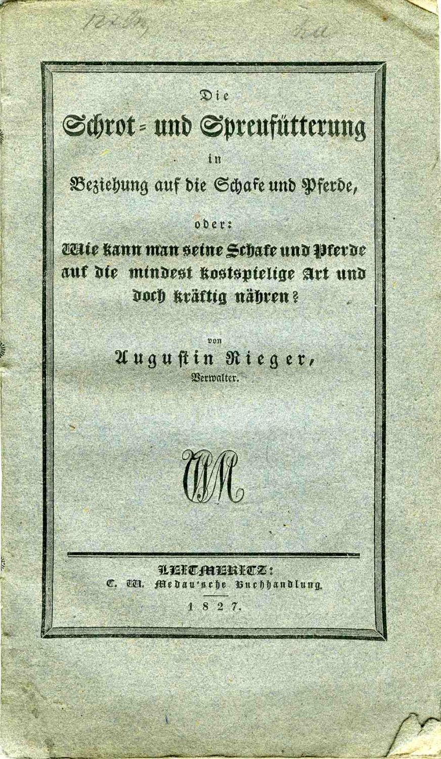 Die Schrot- und Spreufütterung in Beziehung auf die Schafe und Pferde, oder: Wie kann man seine Schafe und Pferde auf die mindest kostspielige Art und doch kräftig nähren? ...