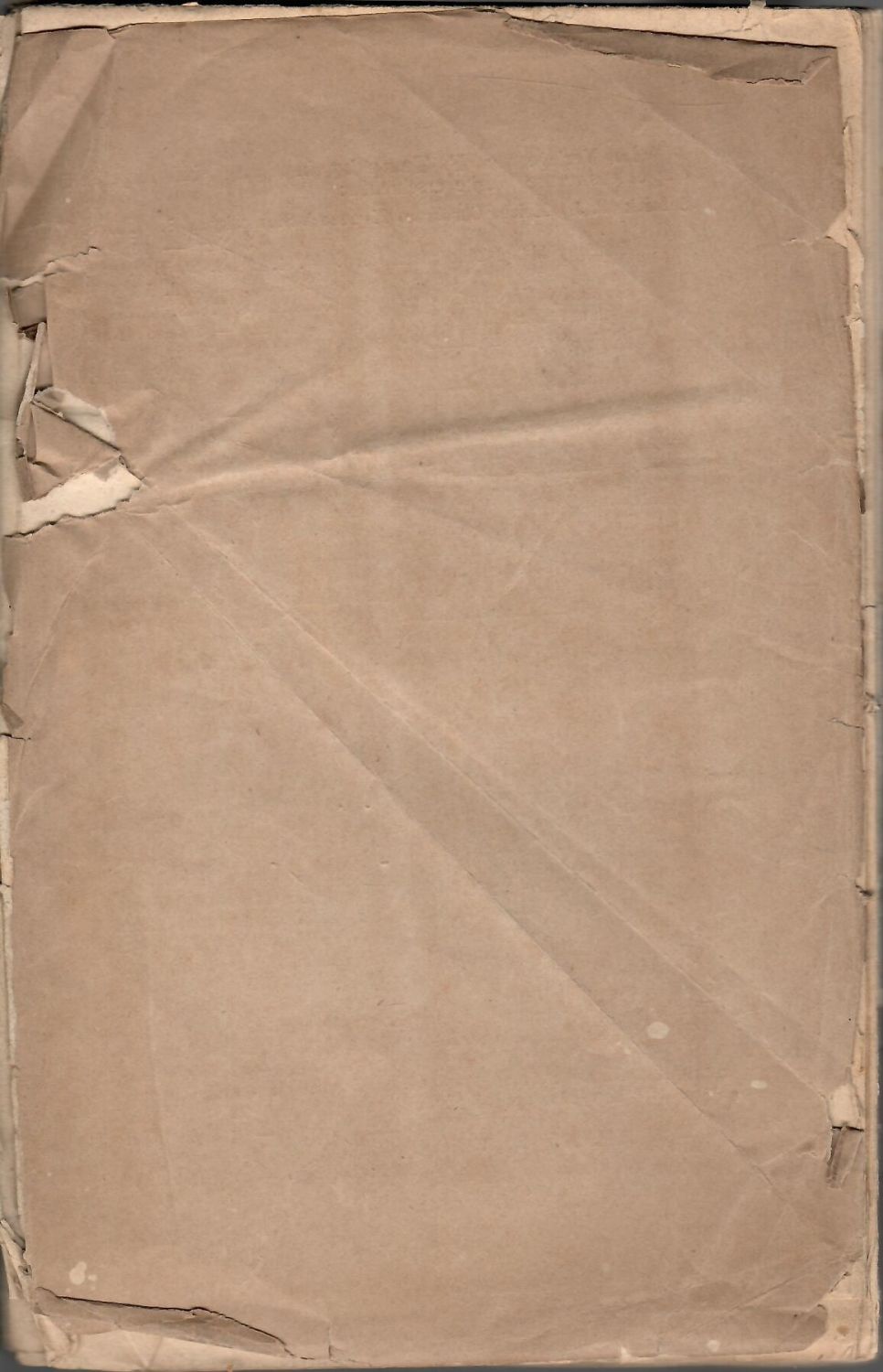 Na přední straně obálky skvrna, hřbet potrhaný, listy od s. 481 uvolněné, mírně pomačkané, poslední natržený, zadní str. obálky odtržená a silně pomačkaná; nerozřezáno.