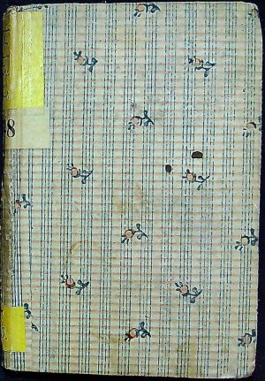 Dobová kartonová vazba potažená papírem s vertikálami a místy zdobeným kvítkem s lístky. Přes horní okraj hřbetu přelepen žlutý kožený štítek s rkp. napsaným názvem, pod ním papírový s číslem a při spodním okraji žlutý s evidenčními údaji. Na tit. listu drobné razítko lóže "zu den 3 Felsen".