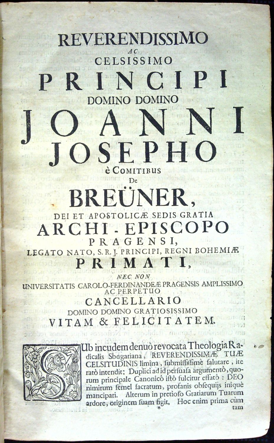 R. P. D. JOANNIS MARIAE SBOGAR SALCANENSIS EX CLER. REGUL. CONGREGAT. S. PAULI, THEOLOGIA RADICALIS, In qua FUNDAMENTALITER VERITAS PROPUGNATUR CONTRA OMNES PROPOSITIONES, olim ab aliquibus Auctoribus ternere doctas, AB ALEXANDRO VII. INNOCENTIO XI. & ALEXANDRO VIII. PROSCRIPTAS, AC Ordine Alphabetico, In centum sexaginta duobus Tractatibus, selectissimis casibus adornatis, serio examinatas, & discussas; UNIVERSIS THEOLOGIS, CONFESSARIIS, AC JURISPERITIS SCITU APPRIME NECESSARIIS: Nec Non OMNIUM RERUM, AC VERBORUM UBERRIMUS VISITUR INDEX, ALTER TRACTATUUM, TERTIUS PROPOSITIONUM SECUNDA EDITIO Priori longe emendatior. Anno M DCC VIII.