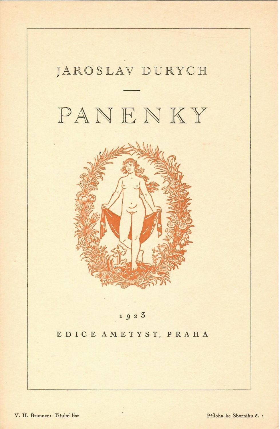V textu řada vyobrazení, 22 příloh s ukázkami tit. listů, ex libris. Původní články mimo jiné od Karla Dyrynka "Vojtěch Preissig - exlibrista", od K. J. Obrátila o Bayrosovi a českých ex libris, od A. Stříže o knihách ze Staré Říše, od Krčmy o českých vydáních Máje aj. Tištěný obsah nesouhlasí se skutečným obsahem sborníku.<br>Papírová obálka ošoupána, při okrajích lehce pomačkána. Pravý spodní roh prvního dílu se stopou po ohnutí. Při horním okraji přední desky prvního dílu proříznutí od skla, které částečně zasahuje do čtyř příloh. První dva listy prvního dílu uvolněny z vazby, u druhého dílu knižní blok zcela odlepen od papírových desek.