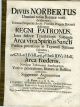 DIVUS NORBERTUS Unanimi totius Boëmiae voto desideratus, Solenni Purpurati Archi=Praesulis Prageni Decreto destinatus REGNI PATRONIS, Inter festivae Translationis Solemnia Arca viva Spiritus Sancti Publica precatione in Teynensi Statione falatus; Demum: sae CVLarIIVbILaeo, qVIinto IDVs MaII, Arca foederis, Novique Testamenti Sanctuarium Votiva peroratione, Sionaea in Basilica celebratus, Suggerente Argumentum dicendi L. Regum 2. c. 6. v. 12.