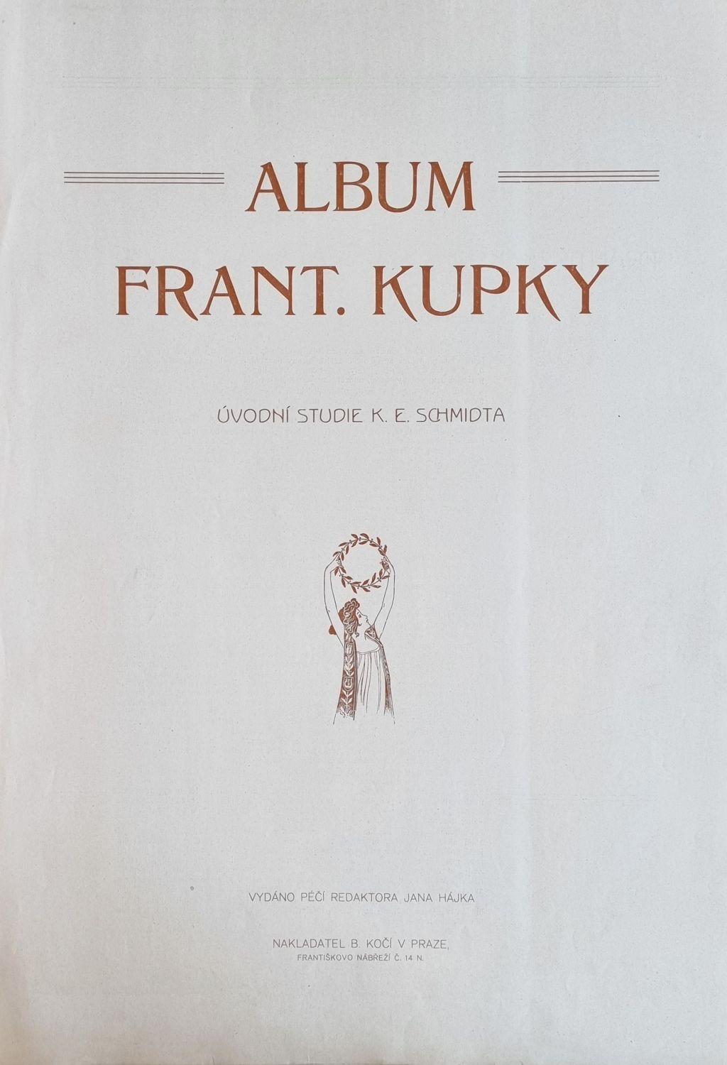 Za úvodním dvoulistem s úvodní studií a seznamem vyobrazení, 29 listů s 33 vyobrazeními Kupkových prací. Album bylo vydáno péčí redaktora Jana Hájka. Na tit. listu Kupkova viněta. - Původní obálka s chlopní z ručního růžově barveného papíru, při spodním okraji na třech místech lehce natržená.
