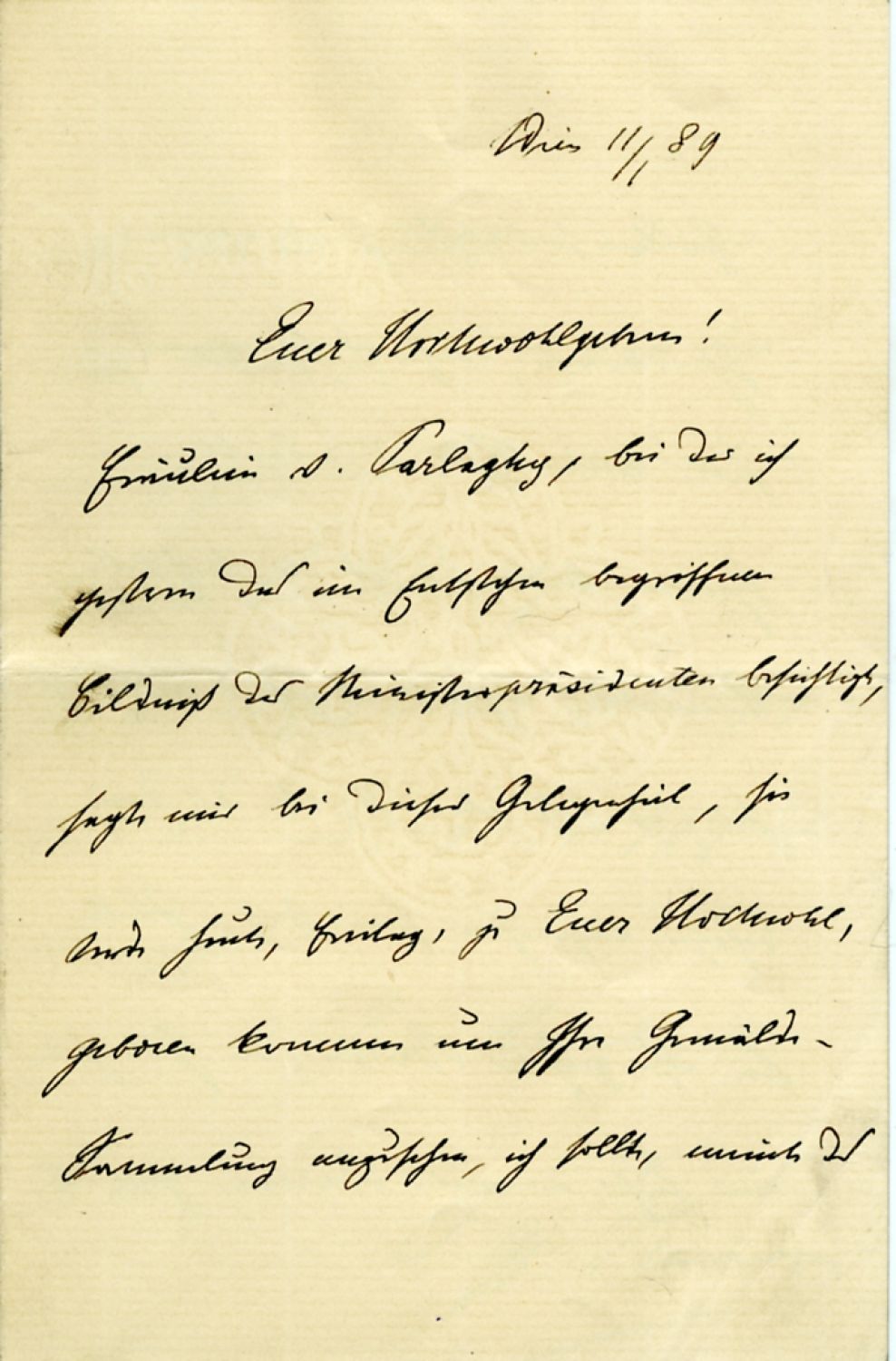 V půli přeložený dvoulist 178 x 115 mm popsaný po třech stranách černým inkoustem. Německy psaný dopis datovaný ve Vídni 11/1 89. -