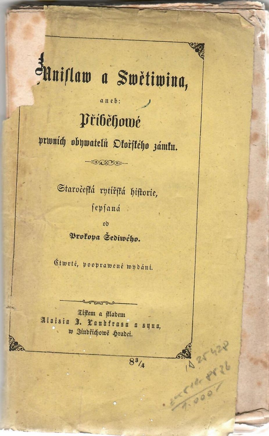 Tištěno švabachem, arabská paginace stran při horním vnějším okraji. - Původní papírová obálka, ve které je volně vložený složený tiskový blok. V horní třetině hřbetu obálky a při vnitřním horním okraji její přední strany chybí papír. V textu tu a tam drobné hnědé skvrnky způsobené kyselostí papíru, oslí uši.<br>....Mnislaw a Swětiwína byli wýborní manželé, a Bůh jim dal dočkat welkýho wěku". Kdo se chce dozvědět co všechno předcházelo ideálnímu tomu manželství, musí si přečíst knihu od počátku.