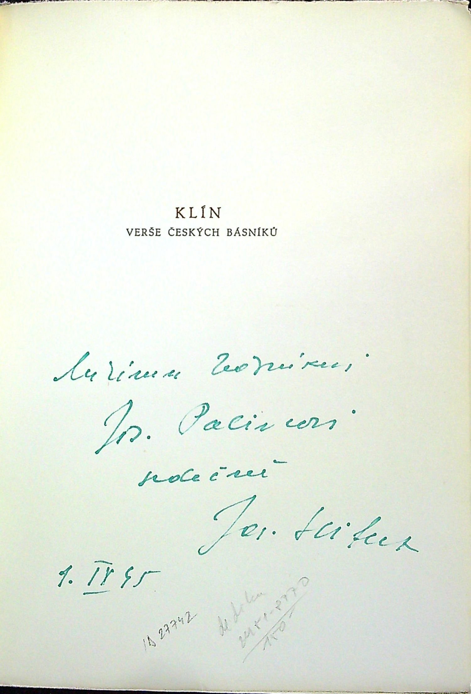Na listu s názvem edice rkp. dedikace zeleným perem "Milému básníkovi Jos. Palivcovi srdečně Jar. Seifert 1.IX. 45".