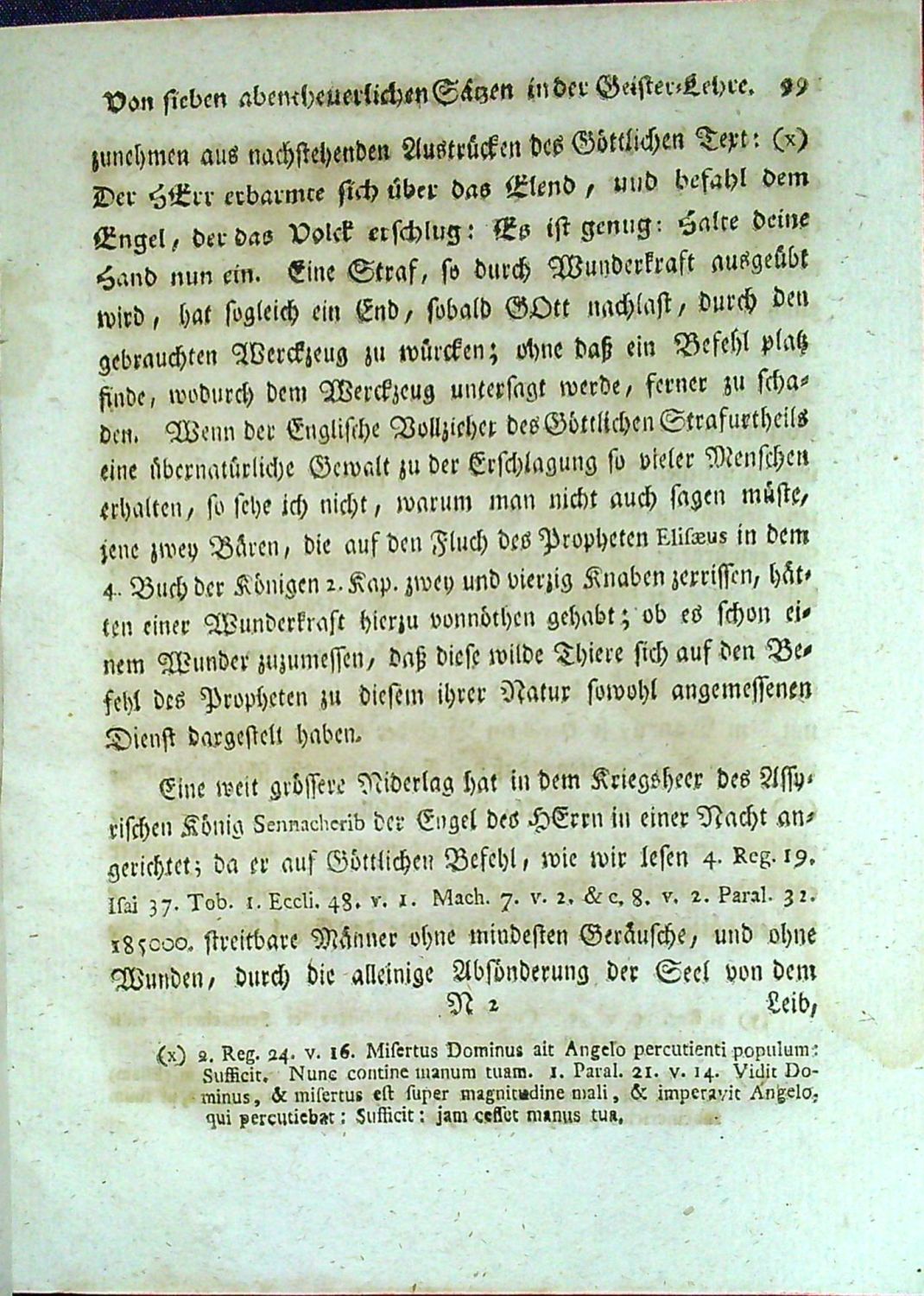 Sieben abentheuerliche Sätze in der Geister=Lehre dieses aufgeklärten Jahrhunderts: I. Die Fürsten, und Mächte der Finterniß ohne alle natürliche Würckungs=Kraft in die Körper: II. Die verworssene Geistere taugliche Werckzeug GOttes zur übernatürlichen Gab, Wunder zu thun: III. Die sichtbare Erscheinungen des Satans, entweder ein leeres Nichts, oder ein Wunderwerck: IV. Die aberglaubische Handlungen ohne teuflische Gemeinschfft, und Mitwürckung, Sünddenfrey: V. Die Hexereyen ohne Bündniß mit dem Satan, ein ohnsträflicher Aberwitz: VI. Die Zauberreyen, würckungslose Unternehmen, oder unschuldige Charlatanerie, und Grossprecherey: VII. Der teuflische Besitzungen jetziger Zeiten, entweder Betrug, oder Kranckheit, oder Einbildung: Aber Von allem, was in der Religion Heiliges, in der Gottesgelerthheit ohntriegliches, in der Historie glaubwürdiges, in der Rechtswissenschafft bewährtes, und in der Weltweißheit gründliches anzutreffen, als unächt mißkennet, und verworffen, durch verschiedene S