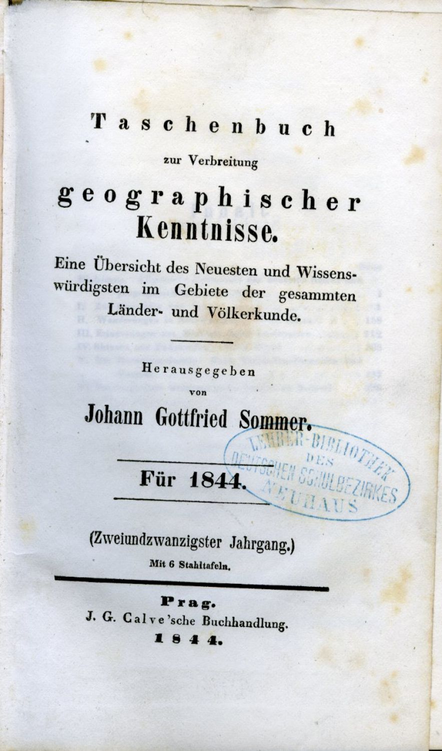 Taschenbuch zur Verbreitung geographischer Kenntnisse. Eine Übersicht des Neuesten und Wissenswürdigsten im Gebiete der gesammten Länder- und Völkerkunde. ... Für 1844. (Zweiundzwanzigster Jahrgang.).