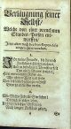 + přívazek: "Verläugnung seiner Selbst/ Welche von einer vernehmen Standes=Person entworffen/ Jetzo aber nach der Bon-Repos-Arie eingerichtet worden". [Prag ?], [Wolfgang Wickhart ?], [cca 1725]. Tištěno švabachem, sazba u horního okraje oddělena jednoduchou linkou, arabsky číslované strofy, názva zvýrazněně tištěny, plné iniciály propletené úponky zalomené do výše 2-3 řádků, koncová viněta. (BCBT neeviduje; SKC eviduje 1 ex. v NK jako přívazek ke stejné knize; KVK eviduje pouze ex. v NK v Praze).