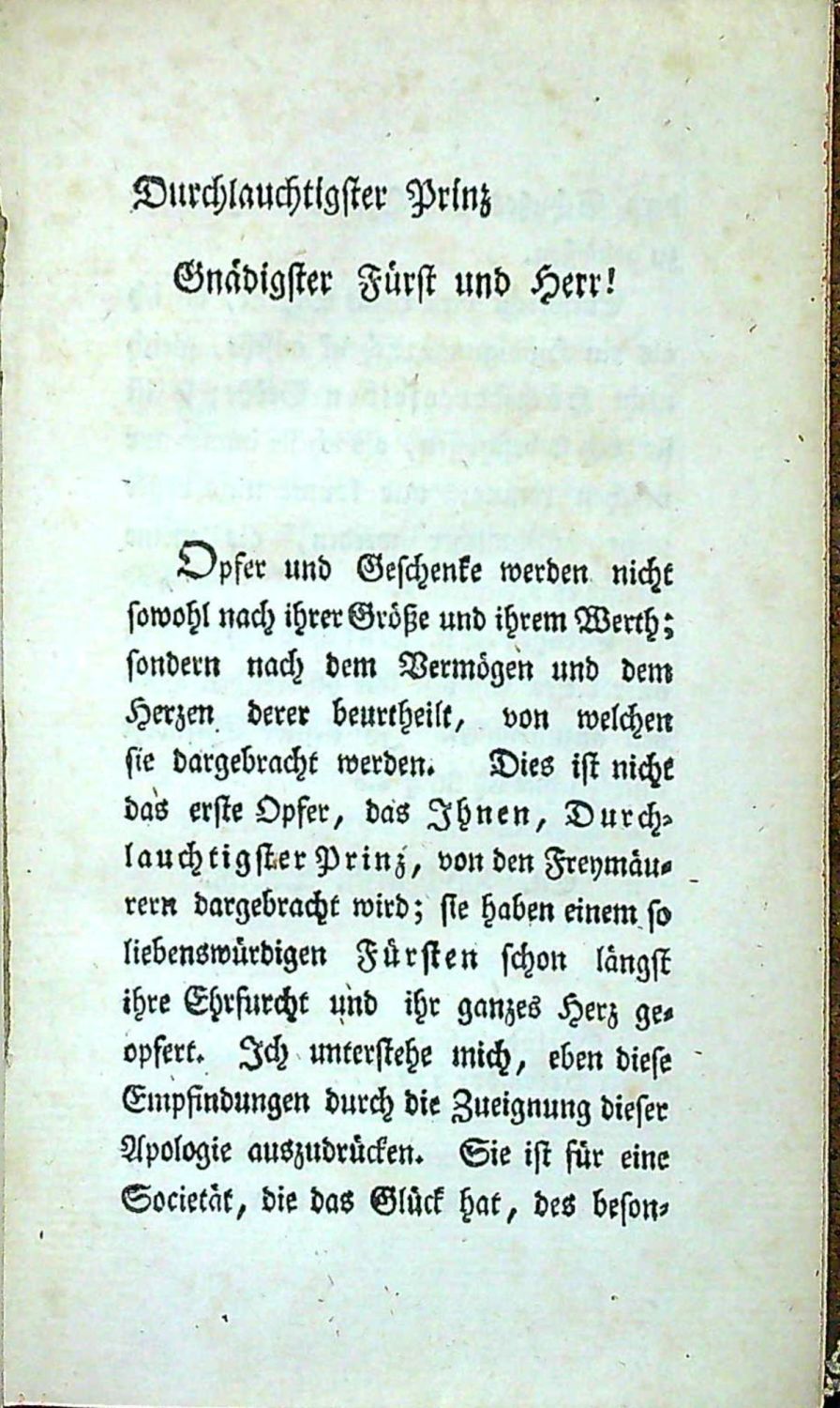 Apologie des Ordens der Frey=Mäurer. Von dem Bruder **** Mitgliede der** schottischen Loge zu P*. Neue ganz umgearbeitete, und einzige authentische Ausgabe. Philadelphia, im Jahr 3882 d.i. 1778.