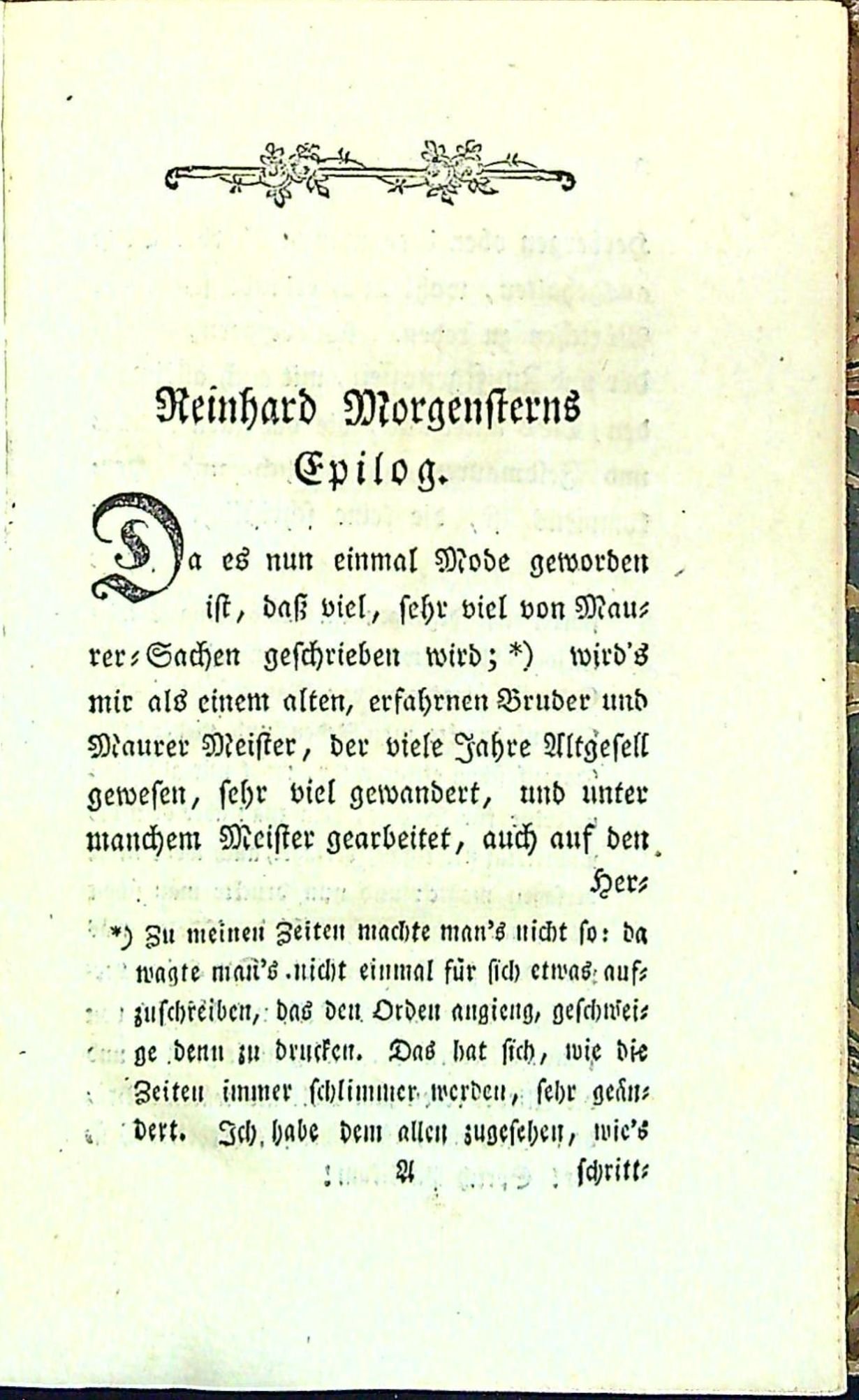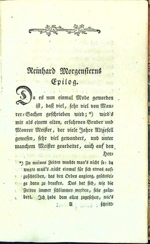 Das Weisheit Morgenröthe oder Reinhard Morgensterns Epilog an meine lieben Brüder Freymäurer und zugleich ans Publikum.