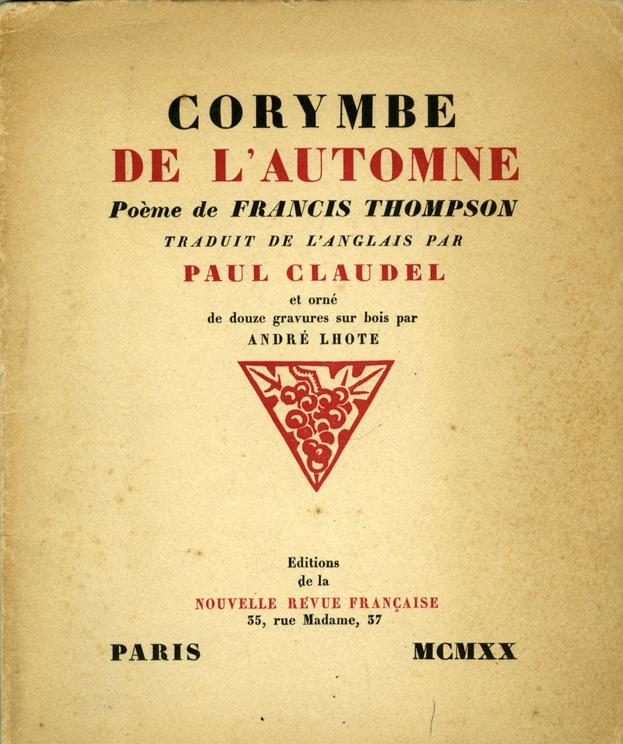Corymbe de l´automne. Poeme de ... traduit de l´anglais par Paul Claudel ...