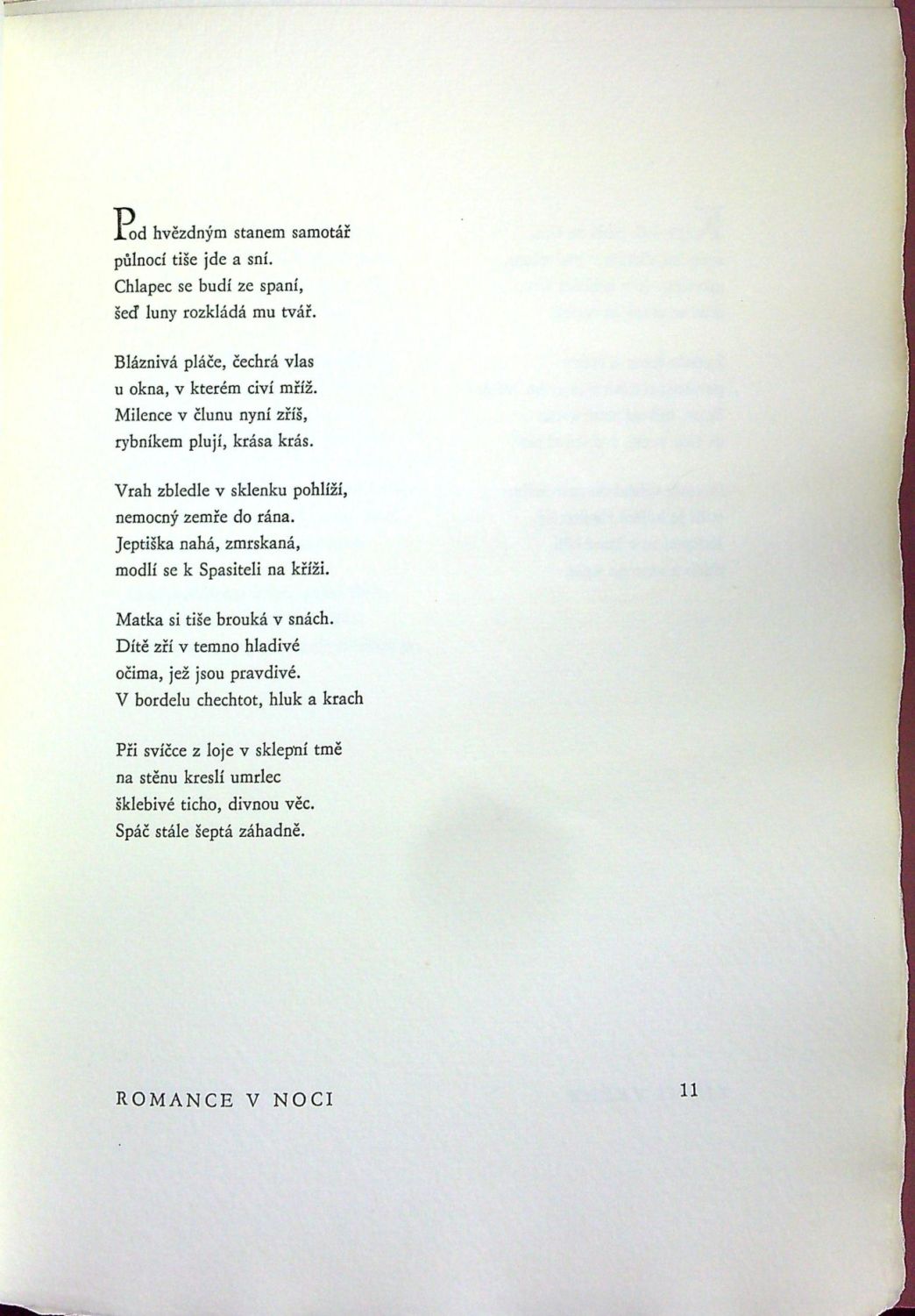 Jeden z 300 výtisků bez ilustrací, který vydal PNP k 100. výročí narození G. Trakla jako subskribční tisk pro členy Spolku českých bibliofilů. (Krom toho vyšlo 200 výtisků se 4 suchými jehlami J. Klápštěho). Písmem cicero Garamond na velkolosinský přírodní papír vytiskly Moravské tiskařské závody. Upravil a obálku navrhl Martin Dyrynk. - V původní obálce volně vložený, složený knižní blok.