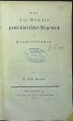 Tištěno švabachem, uprostřed horního okraje stran mizící linka, tučně tištěné plné iniciály ve výši 1-2 řádků. - Dobová pap. obálka přes hřbet z větší části přelepená šedou pap. páskou. Na tit. listu staré razítko berlínské zednářské lóže "Loge zu den drei Weltkugeln", na předním přídeští nalepeno mědirytinové ex libris Gustava Partheye. Obálka lehce zašpiněná, knižní blok neoříznutý, na několika listech papír lehce zkrabatělý, místy oslí uši.