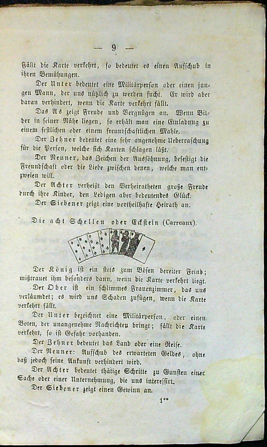 Tištěno švabachem, francouzská slova antikvou. V textu několik dřevoryt. vyobrazení hracích karet. - Knižní blok nerozřezaný a volně vložený v pap. obálce z druhé půle 19. století.