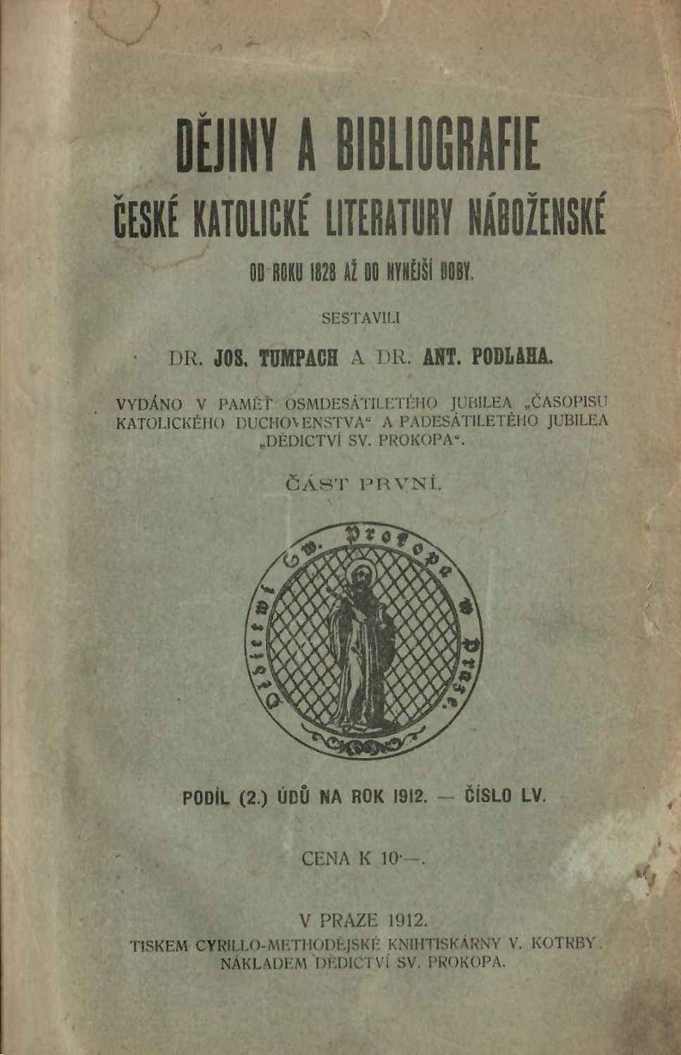 Dějiny a bibliografie české literatury náboženské od roku 1828 až do nynější doby. ... Vydáno v paměť osmdesátiletého jubilea "Časopisu katolického duchovenstva" a padesátiletého jubilea "Dědictví sv. Prokopa".