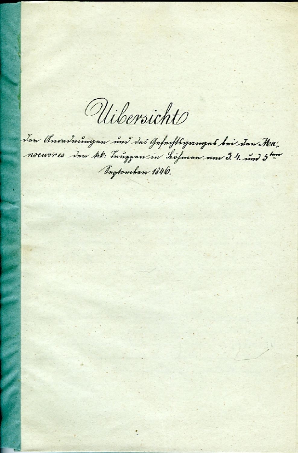 Uibersicht der Anordnungen und des Gefechtsganges bei den Manoeuvres der k:k: Truppen in Böhmen an 3. 4. und 5ten September 1846.