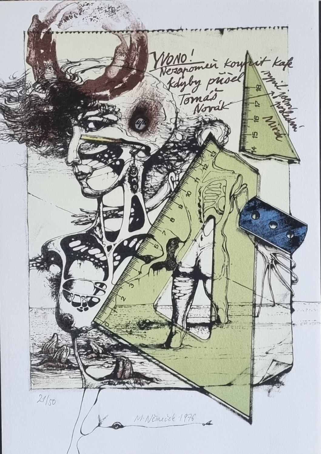 Jeden z 50 samizdatově vydaných a neprodejných sborníků spolkem "Pohodlí". Na rubu přední obálky na stroji napsané a pak rozmnožené úvodní slovo od pana Müllera, jeden list se seznamem 32 autorů a autorek jejichž původní práce sborník obsahuje (grafické listy, fotografie, koláže). Do sborníku přispěli: L. Báča, J. Brabcová, P. Brukner, F. Císař, V. Faberová, P. Fux, J. Hampl, H. Hovorková, P. Hudec-Ahasver, M. Hynek, J. Jelínek, A. Kaláb, M. Kohout, V. Kotrch, L. Krédl, Spolek K. H. Máchy, V. Merhaut, L. Michálek, Y. Němečková, M. Němeček, T. Novák, J. Osecký, O. Pajer, L. Posejpal, J. Reich, P. Sirotek, B. Tesař, K. Zavadil, B. Zemánek, J. Zich, M. Zychová, J. Žižka. Všechny práce jsou autory podepsané, grafické listy číslované. <br>Původní obálka z bílého lakovaného papíru, na přední desce původní štítek s názvem, na zadní desce chlopeň s nalepenou fotografií a papírovou stvrzenkou, na líci zadní desky nalepená pap. kopie starého hlavičkového papíru Umělecko-průmyslového závodu Aloise Jos. Kučery, na které jsou perem vepsány údaje o sborníku, datace a jméno prvního majitele, podepsáno "Pohodlí". V obálce volně vložené výtvarné práce. Původní ochranné kartonové pouzdro potažené černým plátnem, na přední desce nalepen štítek s názvem. <br> Spolek "Pohodlí" vznikl 2. července roku 1968 na zahrádce domku fotografa Tomáše Nováka. K jeho zakladatelům dále patřili L. Báča, J. Brabcová, M. Hynek, J. Jelínek, M. Kohout, J. Kostková, M. Němeček, A. Novák a J. Ptáčková. Činnost spolku byla od začátku neodmyslitelně spojena s malostranským hostincem "U Bonaparta", kde byly úřednické a návštěvní hodiny spolku. Spolek vydával vlastním nákladem novoročenky, sborníky, kalendáře .... a pořádal řadu kulturních, mnohdy velmi spontánních akcí, kterými reagoval na bezútěšnou a demoralizující dobu komunistické normalizace.