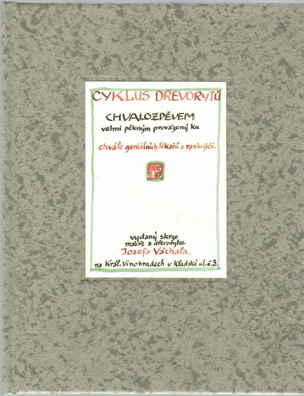Cyklus dřevorytů. Chvalozpěvem velmi pěkným provázený ku chvále geniálních lékařů a ranhojičů.