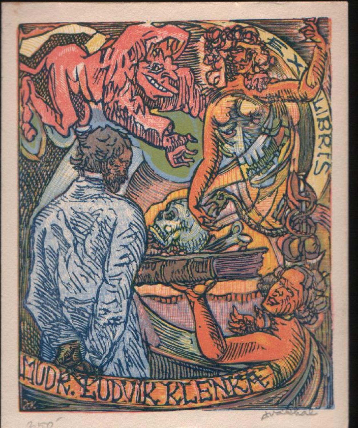 Barevný dřevoryt, v pravém spodním rohu Váchalem signováno. 129x102mm.