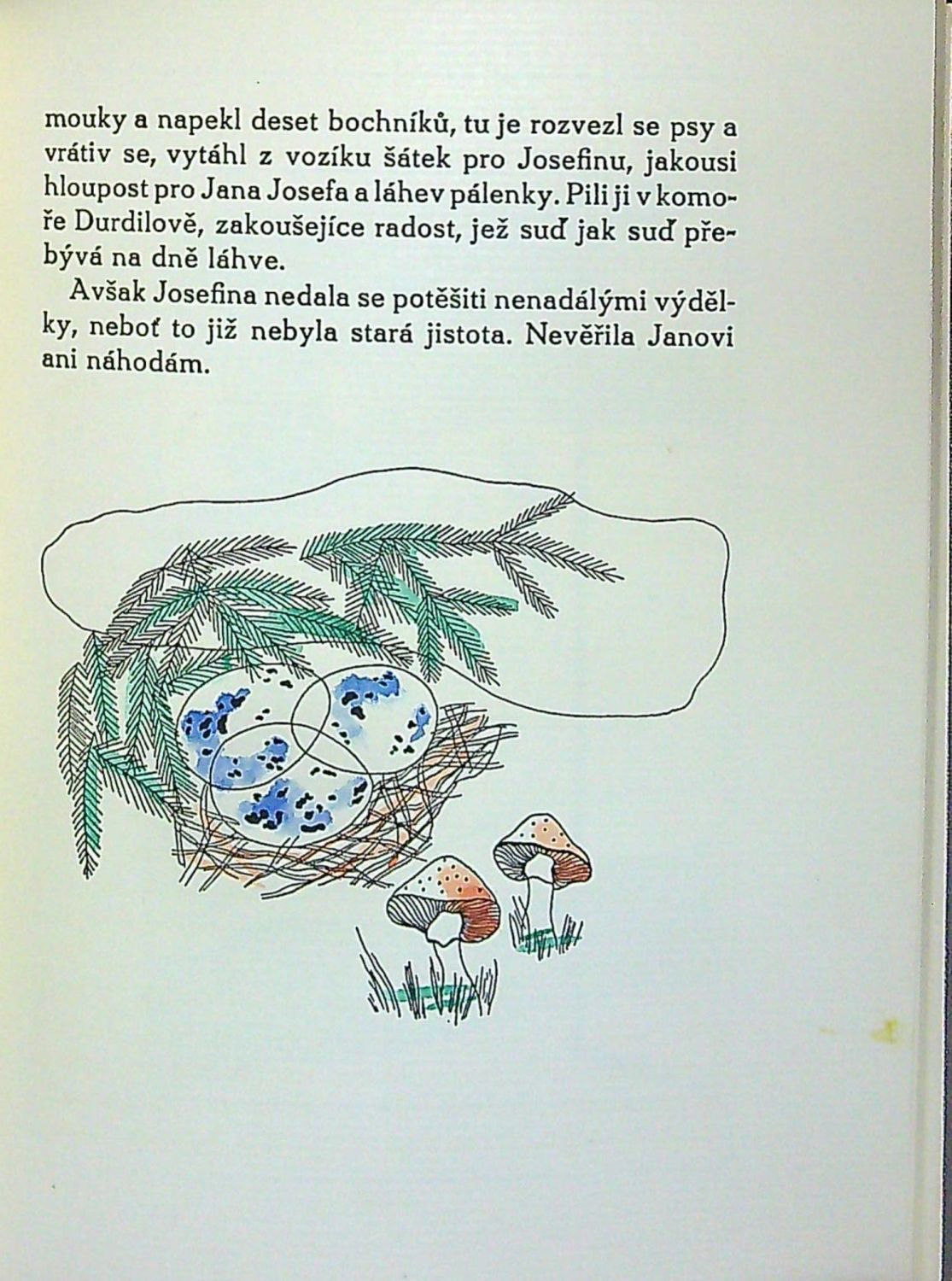 | Ilustrace: | 10 ručně kolorovaných ilustrací (z toho 5 celostr.) od Toyen + kolorovaná viněta na tit. listu, autorkou podepsaná. |