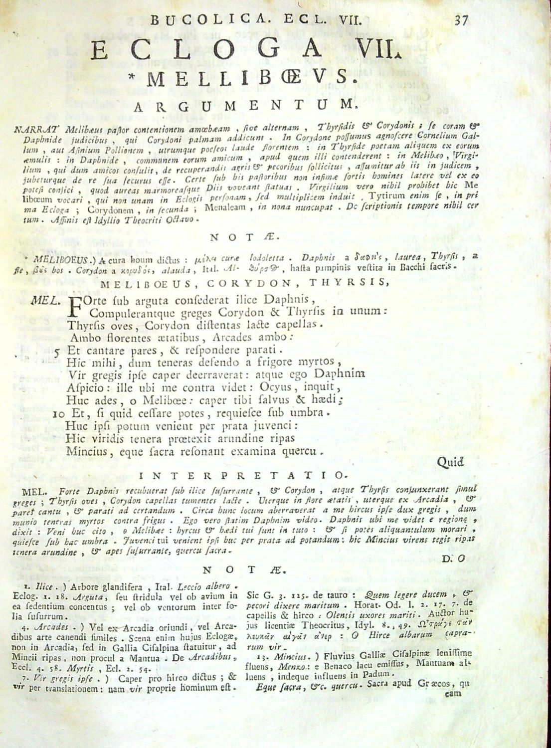 Na titulních listech dřevořezové viněty, živá záhlaví, poznámky tištěné ve dvou sloupcích, tučně tištěné versálky, rejstřík tištěný ve čtyřech sloupcích, před stranou 347 tištěný titulní list II. dílu, oba díly průběžně paginovány. Za předmluvou životopis Vergilia.<br>Dobová vazba s kartonovými deskami, koženým hřbetem a nárožnicemi. Ve hřbetu 5 vazů, ve druhém poli původní kožený štítek s tlačeným a zlaceným názvem, v poli třetím původní tmavý kožený štítek s vytlačeným označením dílů, v ostatních polích tlačené a zlacené ozdůbky rostlinného charakteru. Červeně barvené ořízky, vazba ohmataná a místy odřená, kůže při horním okraji hřbetu natržená, zlacení vybledlé. Na předsádkách dobový olejový papír. Na tit. listu starý proven. záznam (piaristická škola ve Strážnici).