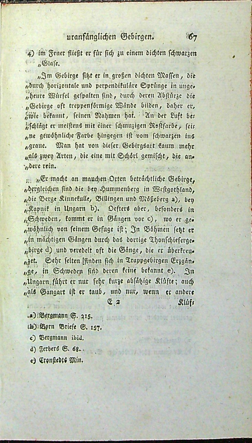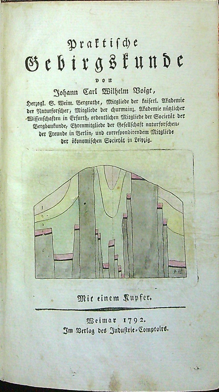 Tištěno švabachem, živá záhlaví.<br>Dobová kartonová vazba potažená olejovým papírem, při horním okraji hřbetu dobový kožený štítek s tlačeným a zlaceným názvem, pod ním tlačená a zlacená ornamentální ozdůbka, barvené ořízky. Vazba ohmataná a místy odřená, naražené rohy.<br>Johann Carl Wilhelm Voigt (20.2. 1752 Allstedt - 2.1. 1821 Illmenau) byl mineralog a důlní inženýr.