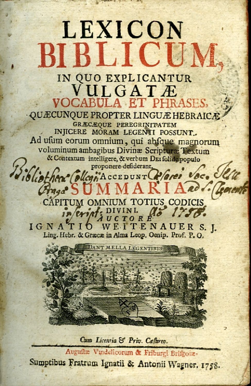 LEXICON BIBLICUM, IN QUO EXPLICANTUR VULGATAE VOCABULA ET PHRASES, QUAECUNQUE PROPTER LINGUAE HEBRAICAE GRAECAEQUE PEREGRINITATEM INJICERE MORAM LEGENTI POSSUNT. Ad usum eorum omnium, qui absque magnorum voluminum ambagibus Divinae Scripturae Textum & Contextum intelligere, & verbum DEI solide populo proponere desiderant.