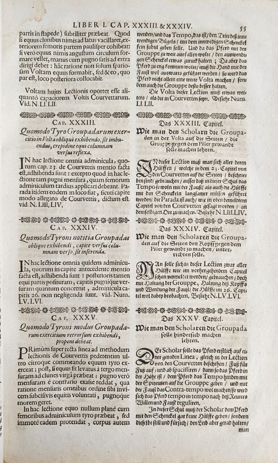 Die umfangreichste deutsche Reitschule mit schönen, von Troschel u. Schurtz gestochenen Tafeln. Von diesen zeigen 98 verschiedene Reitschulübungen und Reiter, die restlichen inkl. 60 Doppelttafeln mit Abbildungen des Zubehörs.<br>