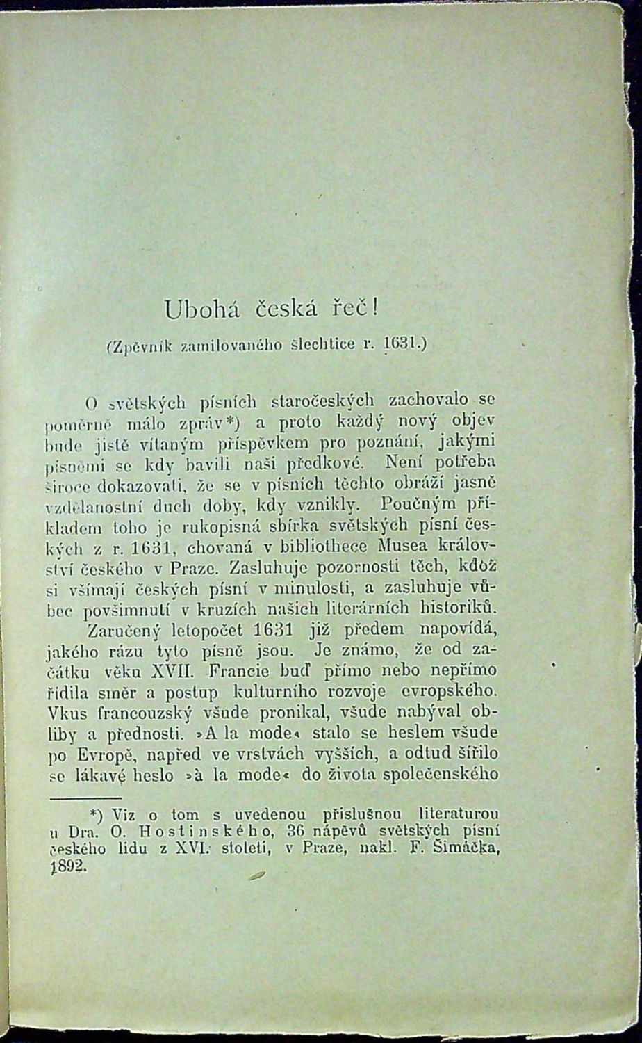 Pův. pap. obálka od knižního bloku odpadlá a na obou jejích listech chybí při okrajích kousky papíru.