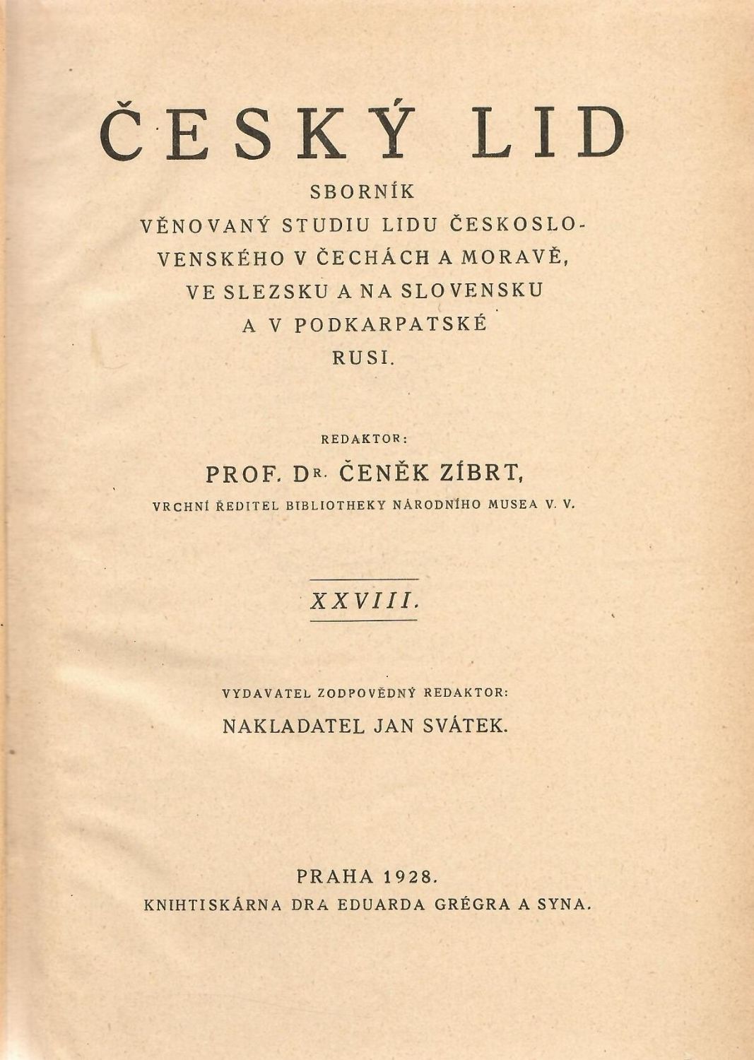 Český lid. Sborník věnovaný studiu lidu československého v Čechách a Moravě, ve Slezsku a na Slovensku a v Podkarpatské Rusi. ... XXVIII.