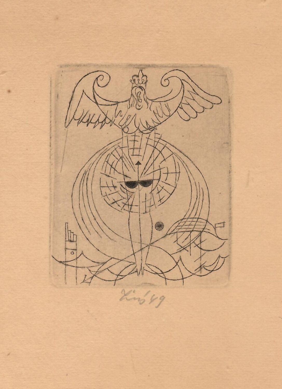 Dvořák: Soupis č. 168<br>Volný list, suchá jehla o rozměru 104 x 85 mm (258 x 178 mm rozměr celého papíru) signovaná a datovaná autorem uprostřed dole (datovaná 1949).