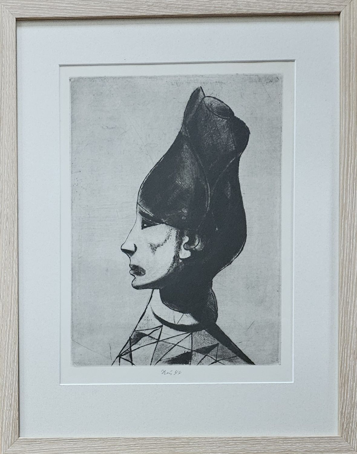 | Suchá jehla, autorem uprostřed dole tužkou podepsaná a datovaná 44. Práce je opatřena hlubokou kartonovou paspartou a olemována světlým dřevěným rámem od Dany Michlové. Dvořák "Soupis" č. 93/4. |