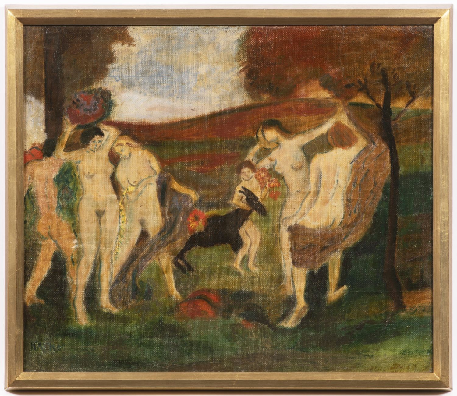 | Olej na plátně, autorem vlevo dole podepsaný a vpravo dole též zčásti vybledlý podpis a velmi nezřetelná datace. Na rubu plátna Kafkova civilistní kresba tuší, autorem vpravo dole signovaná a datovaná ("46"). Zarámováno v patinovaném přírodním dřevěném rámu o rozměru 350 x 418 mm. Provenience: z pozůstalosti autora, kterou od jeho vzdálených příbuzných zakoupila v roce 1995 Ztichlá klika. |