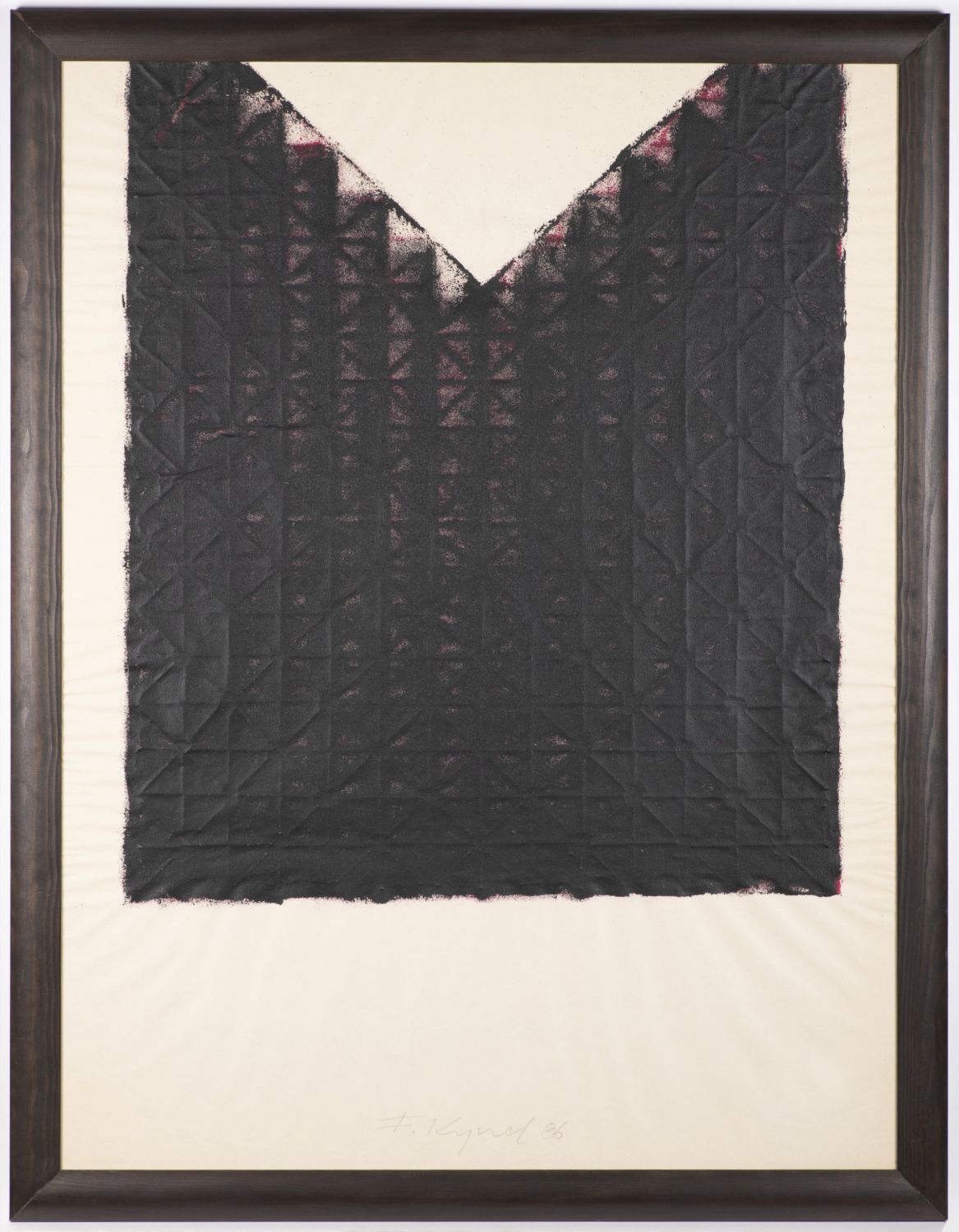 | Monostruktura s akrylovými barvami na ručním papíře, autorem uprostřed dole tužkou podepsaná a datovaná. Zarámováno v tmavém jednoduchém rámu o rozměru 846 x 651 mm. Provenience: dílo bylo zakoupeno z autorovy pozůstalosti. |