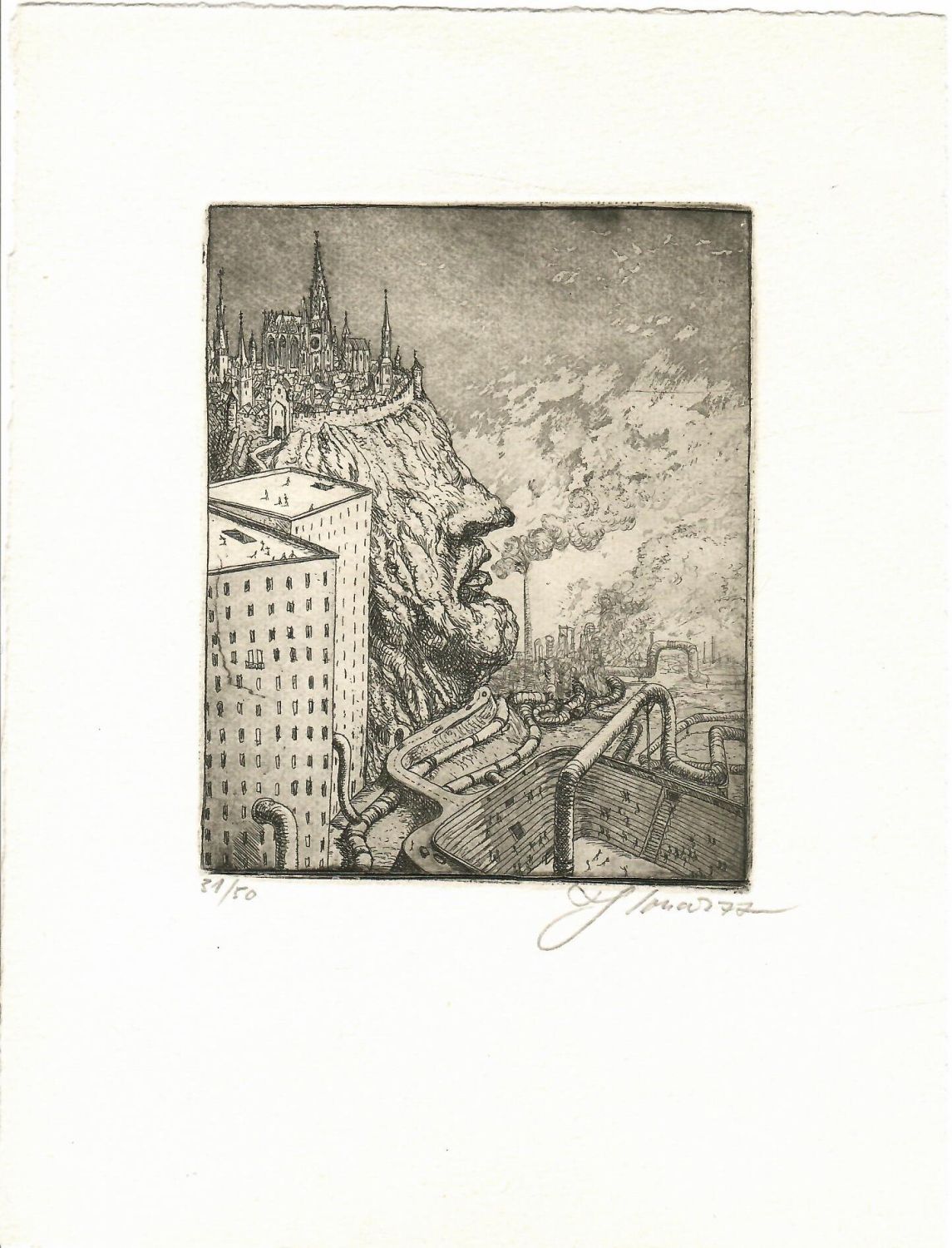 | Lept o rozměru tisku 130 x 107 mm. Při levém spodním okraji tisku tužkou číslováno 31/50, při pravém spodním rohu autorem signováno a datováno. |