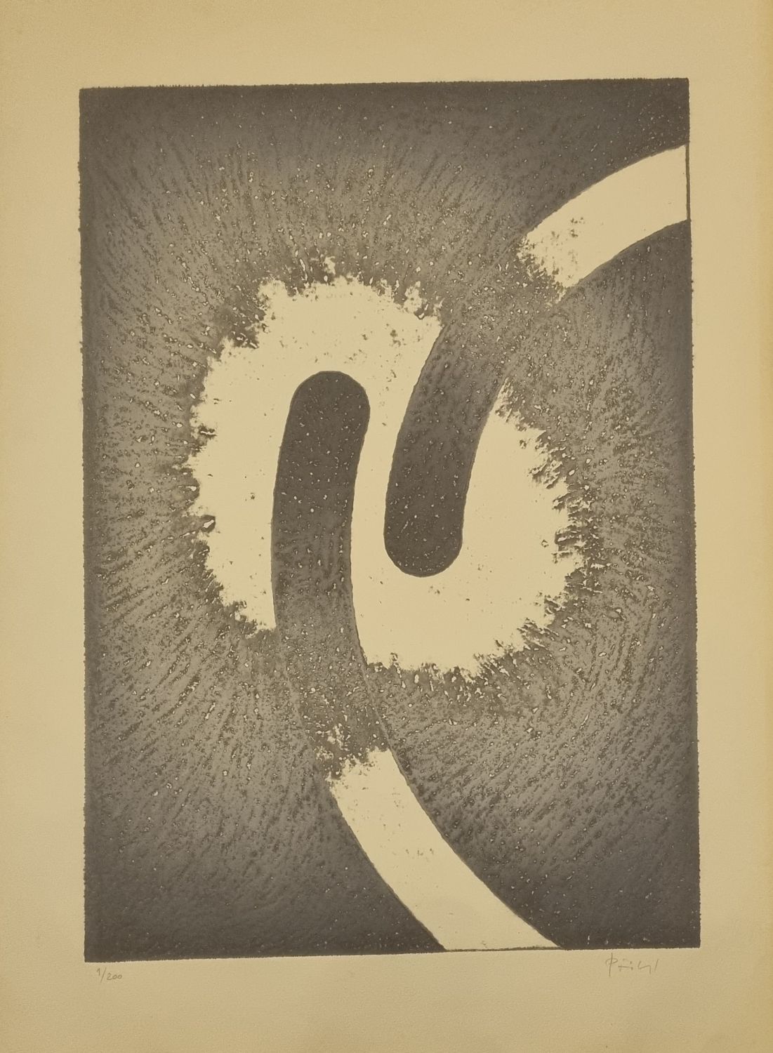 | Stukturální grafika, vpravo dole autorem tužkou podepsaná, vlevo dole číslo tisku 1/200, volný list. |