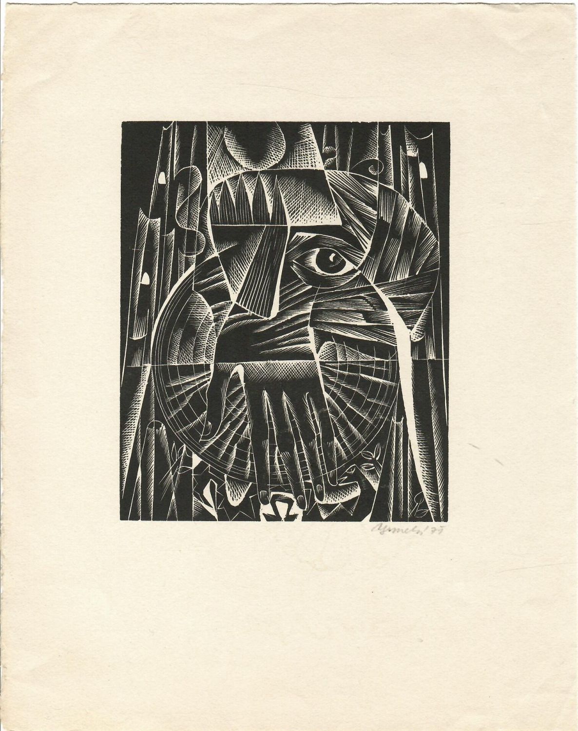 | Dřevoryt, autorkou při pravém spodním okraji tužkou podepsaný a datovaný. Volný list. |