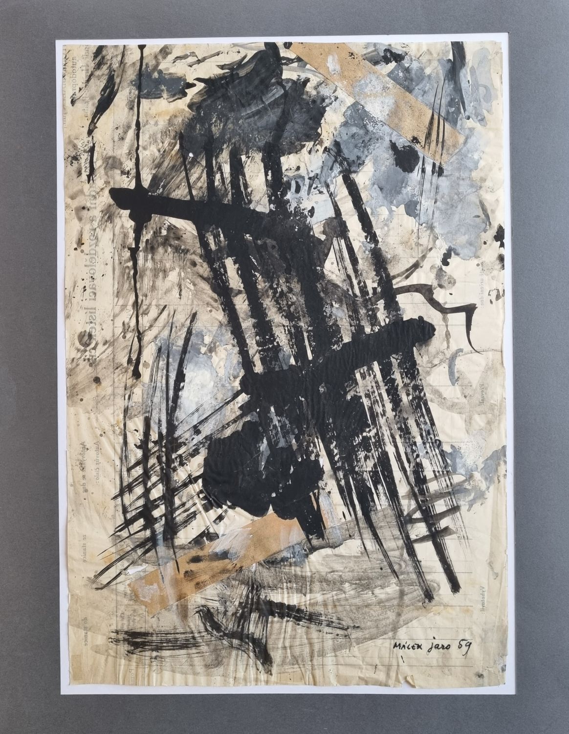 | Kresba štětcem kombinující tuš a bílou temperu s koláží (lepicí páska). Signováno v pravém spodním rohu listu. List adjustován autorem. Provenience: dílo bylo zakoupeno od autora. |