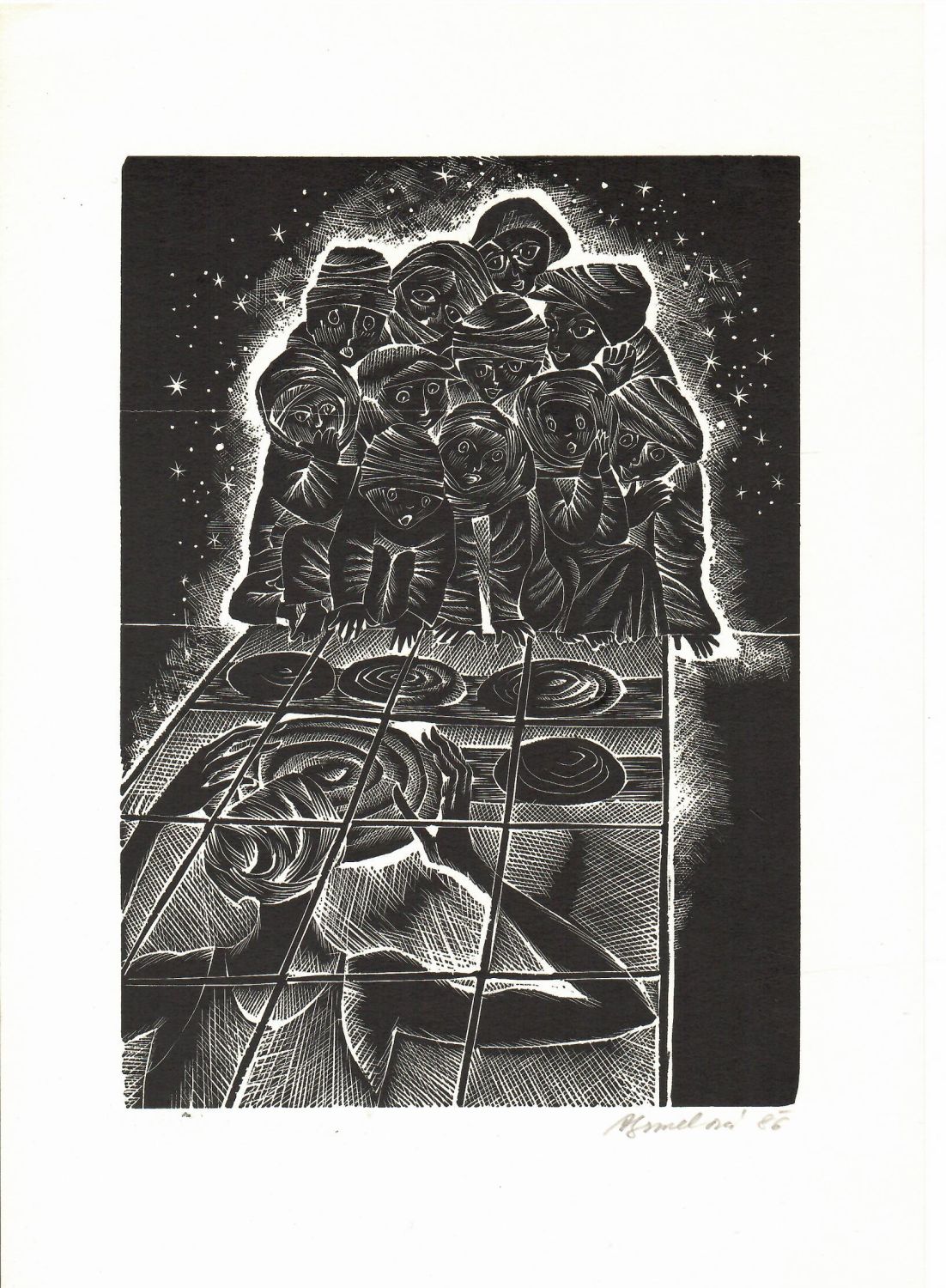 | Dřevoryt, autorkou při spodním okraji tisku tužkou signováno a datováno. Volný list. |