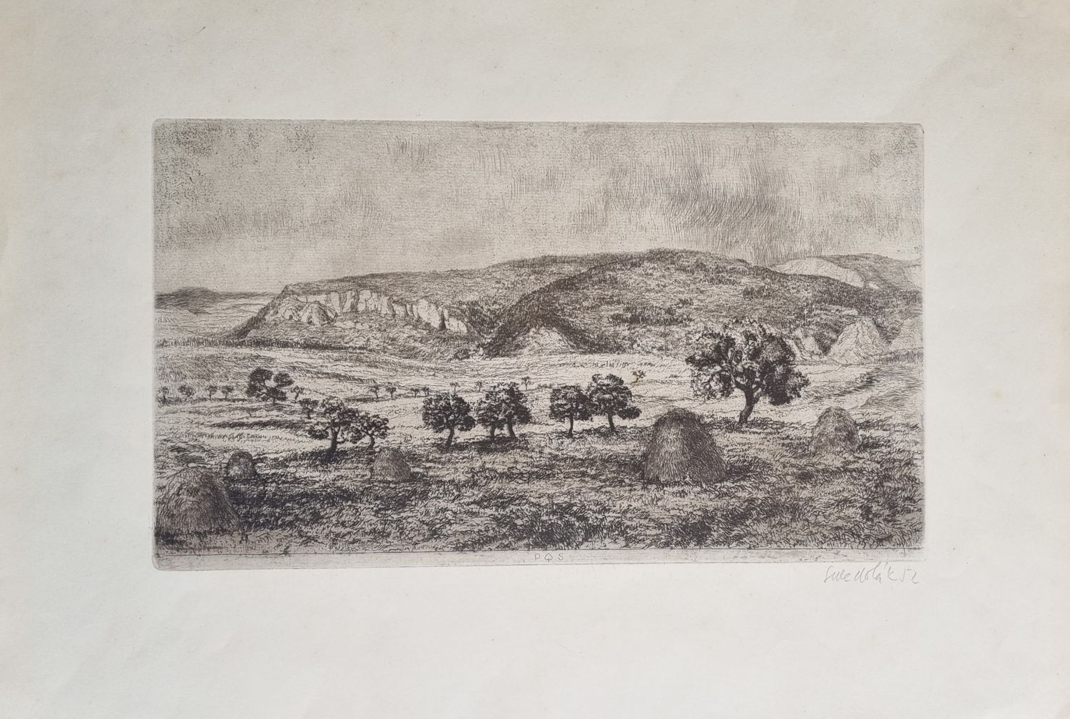 | Lept, autorem při pravém spodním okraji tisku tužkou signováno a datováno. Na listu místy nepatrné světle hnědé flíčky, nezasahuje do grafiky. Volný list. |