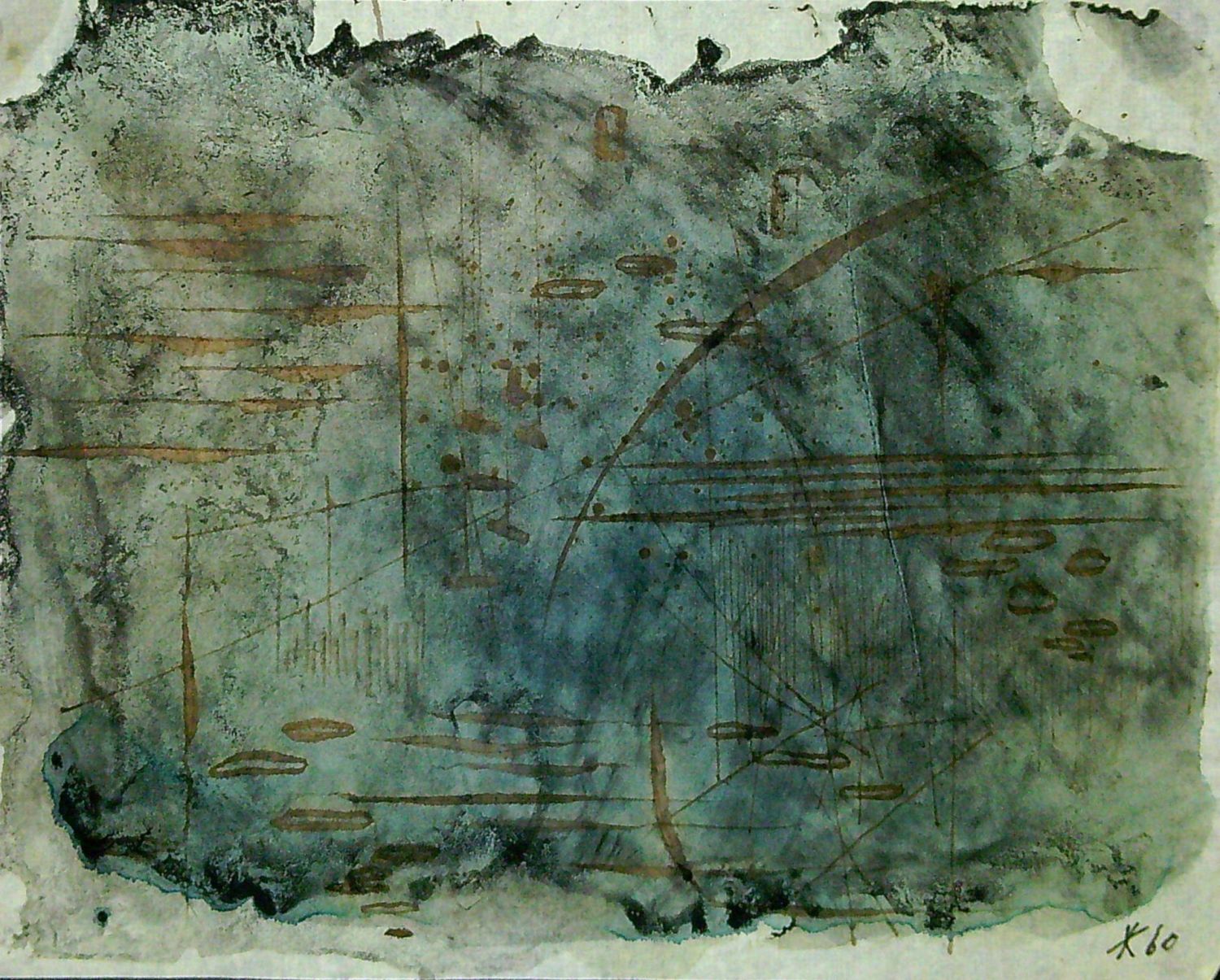 | Akvarelem a tuší lavírovaná kresba o rozměru 165 x 205 mm, v rozích přichycená na černém podkladovém papíře, signovaná a datovaná černým perem vpravo dole. Kresba byla vystavena na Koblasově výstavě ve Ztichlé klice v roce 2002 a byla zakoupena přímo od autora. |