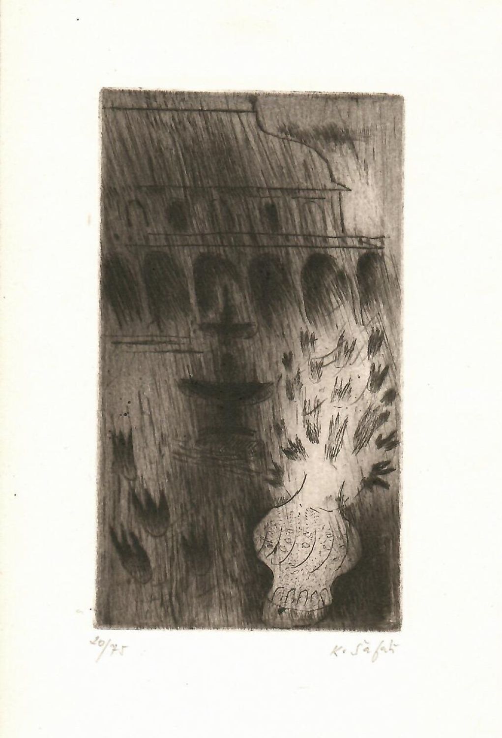 | Lept, autorem při spodním okraji tisku tužkou číslovaný 20/75 a signovaný. Volný list. |
