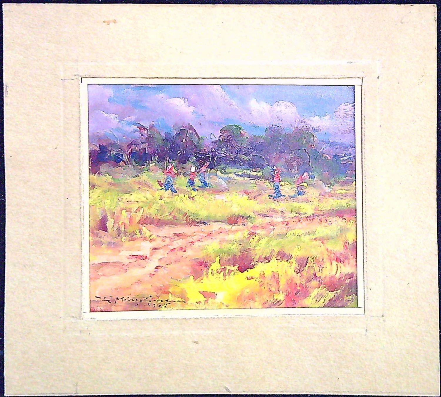 | Olej na kartonu, vlevo dole autorem podepsaný a datovaný. Na rubu práce autorovo razítko. Práce je adjustovaná v pap. paspartě. |
