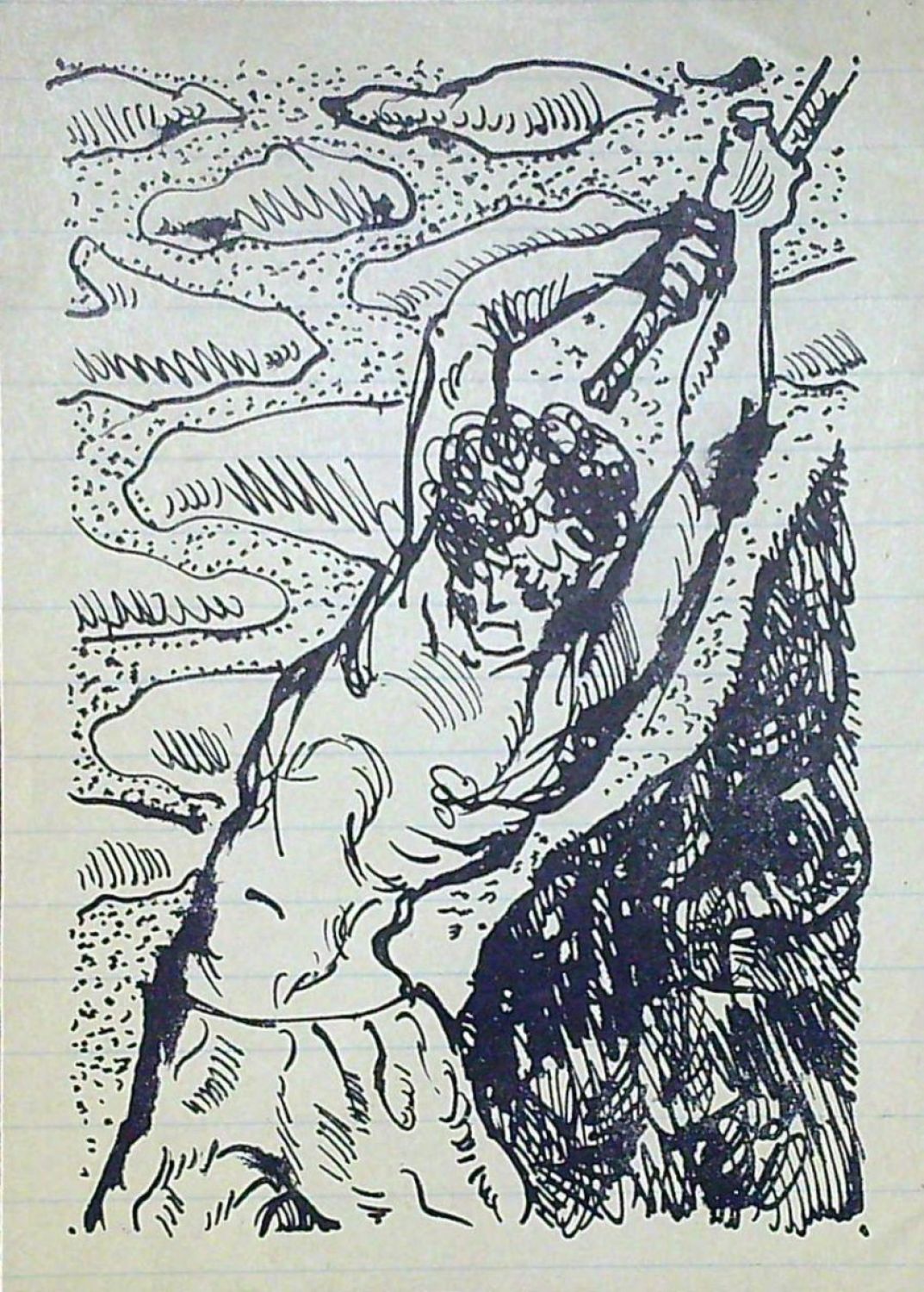 | Algrafie o rozměru 125 x 85 mm tištěná na list linkovaného papíru (140 x 100 mm), na rubu tužkou podpis autora. V Liter. archivu PNP je uložen dopis J. Dočekala datovaný 22.3.1951 psaný na rubu sedmi algrafií, tato je jiným otiskem jedné z nich. |