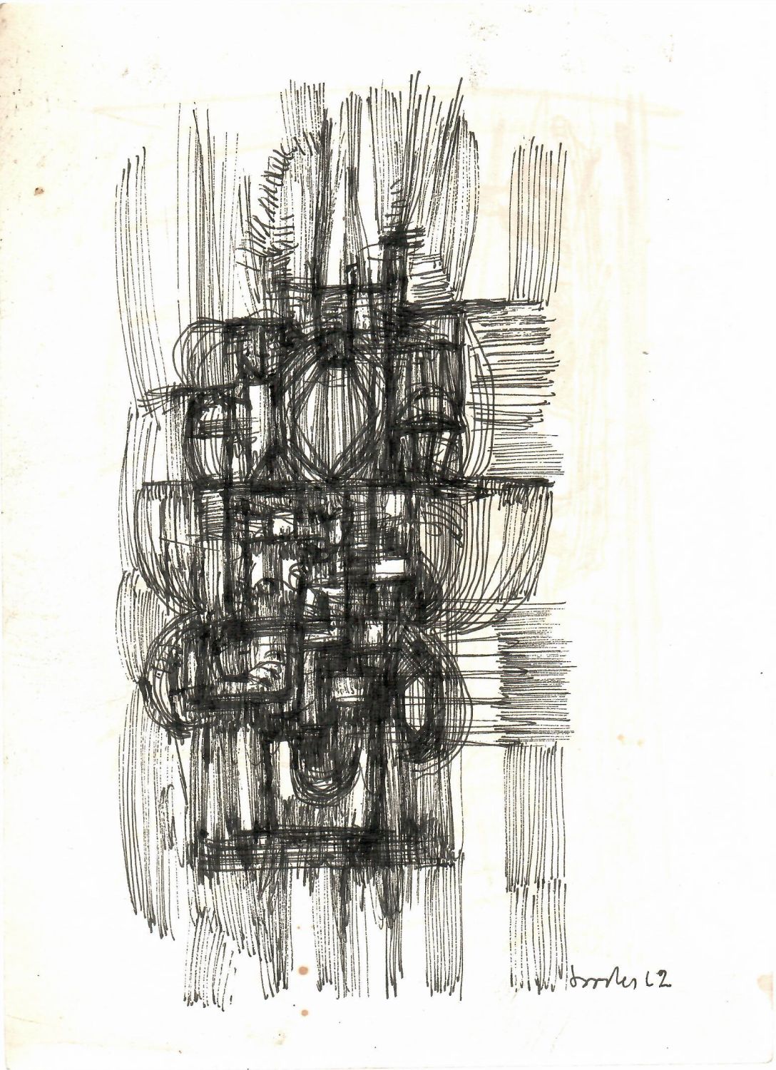 | Kresba tuší na volném papíru o rozměru 272 x 197 mm (přibližný rozměr kresby samotné je 230 x 115 mm). Kresba autorem v pravém spodním rohu tuší signována a datována. Na druhé straně listu další Soosterova kresba, kterou ale nedokončil a přeškrtal. Papír místy s hnědými flíčky, místy lehké stopy po ošoupání. |