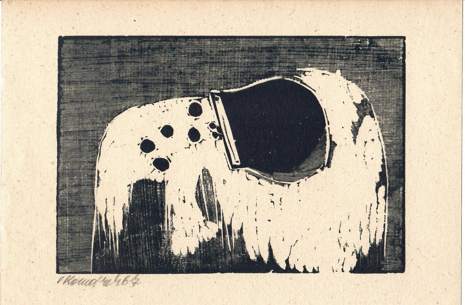 | Dřevoryt o rozměru desky 113 x 167 mm na volném listu o celkovém rozměru 148 x 220 mm. V levém spodním rohu autorem tužkou signováno a datováno. |