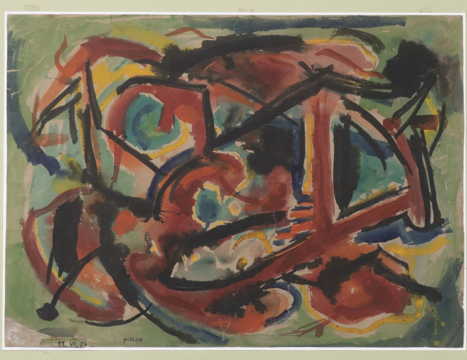 | Akvarel s tuší na papíře, autorem vlevo dole datovaný ("21. VI. 58") a podepsaný. Papír při okrajích místy zkrabatělý. Provenience: práce byla zakoupena přímo od autora. |