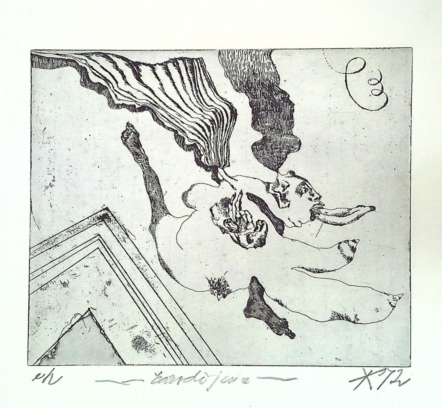 | Lept s akvatintou, volný list autorem vpravo dole signovaný a datovaný, uprostřed dole autorem tužkou napsaný název, vlevo dole číslo tisku 2/2. |